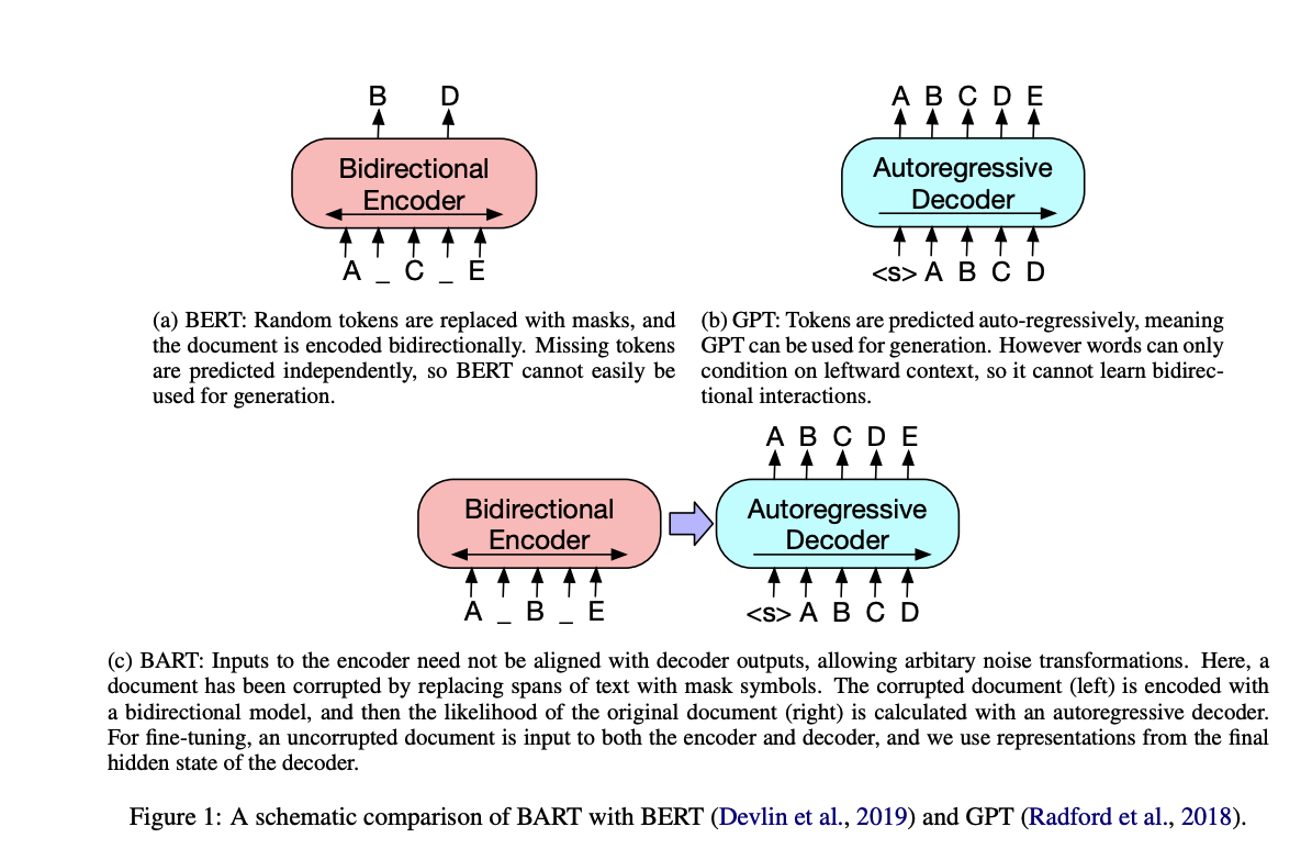 - We present BART, which pre-trains a model combining Bidirectional and Auto-Regressive Transformers.