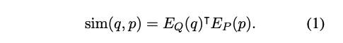 - 질문과 passge 간의 유사도 점수를 측정하기 위해 아래와 같인 정의하였다.