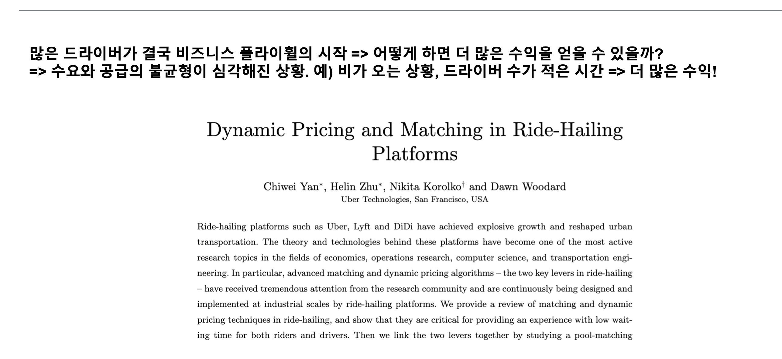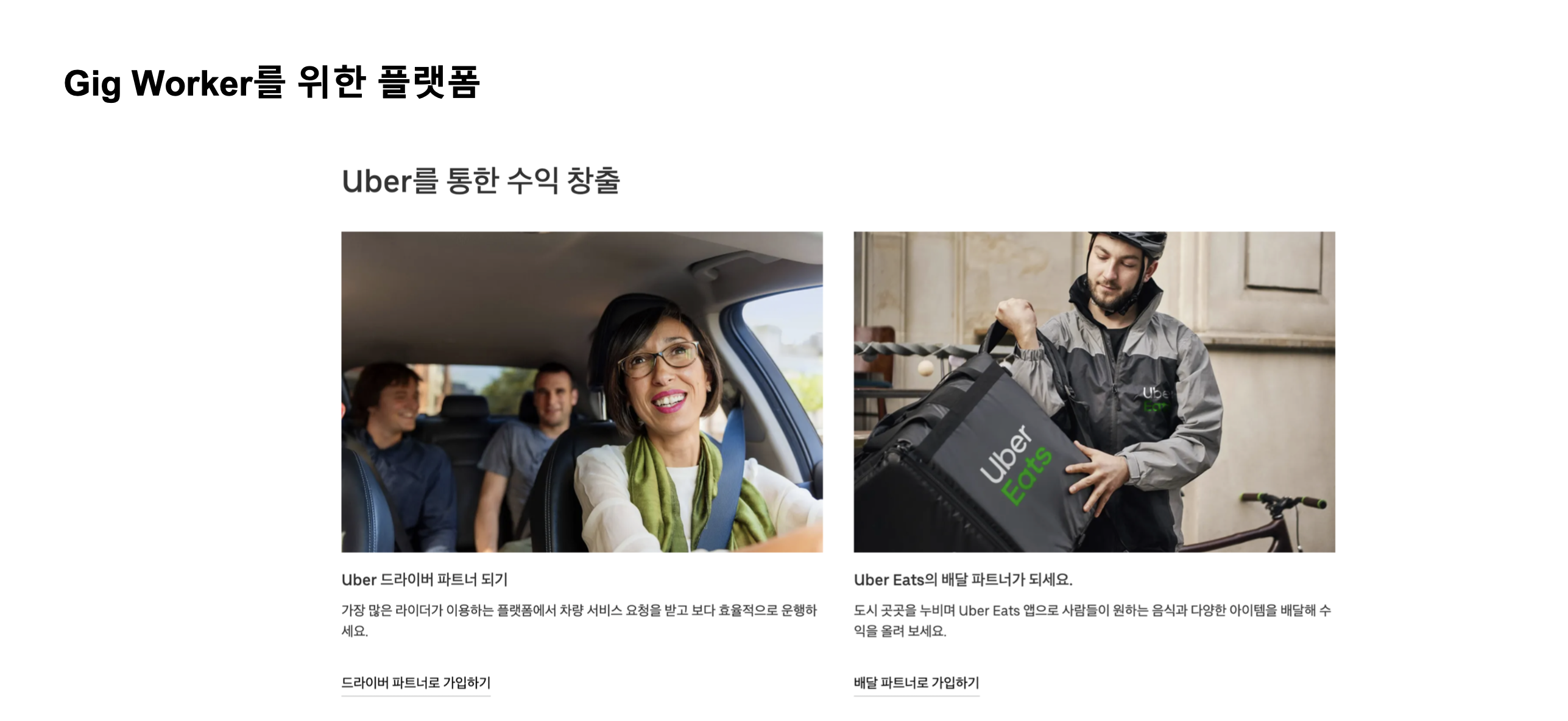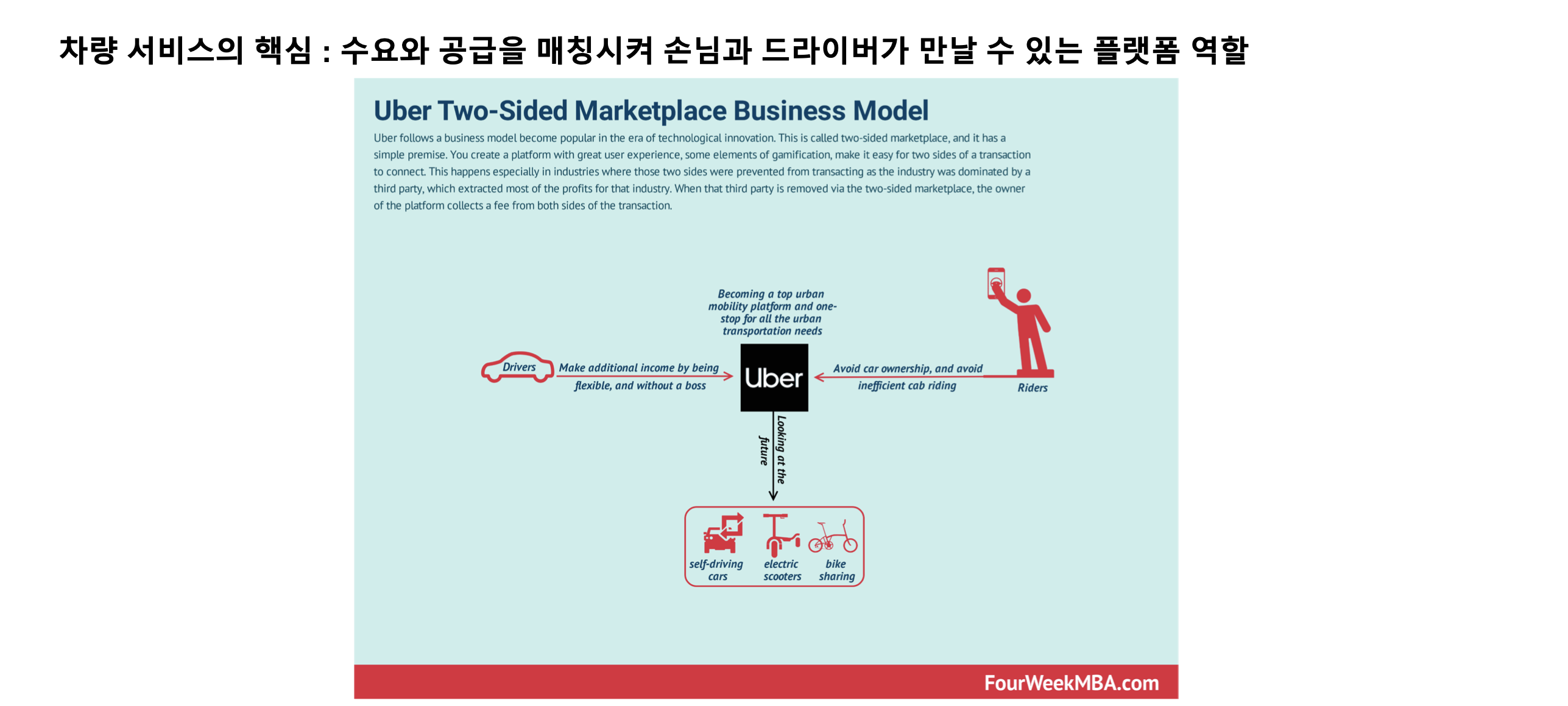 - 우리가 대표적으로 알고 있는 Uber : Taxi와 유사한 이동 서비스