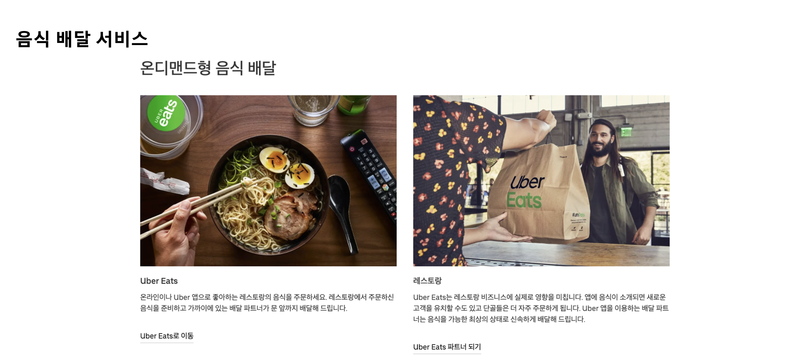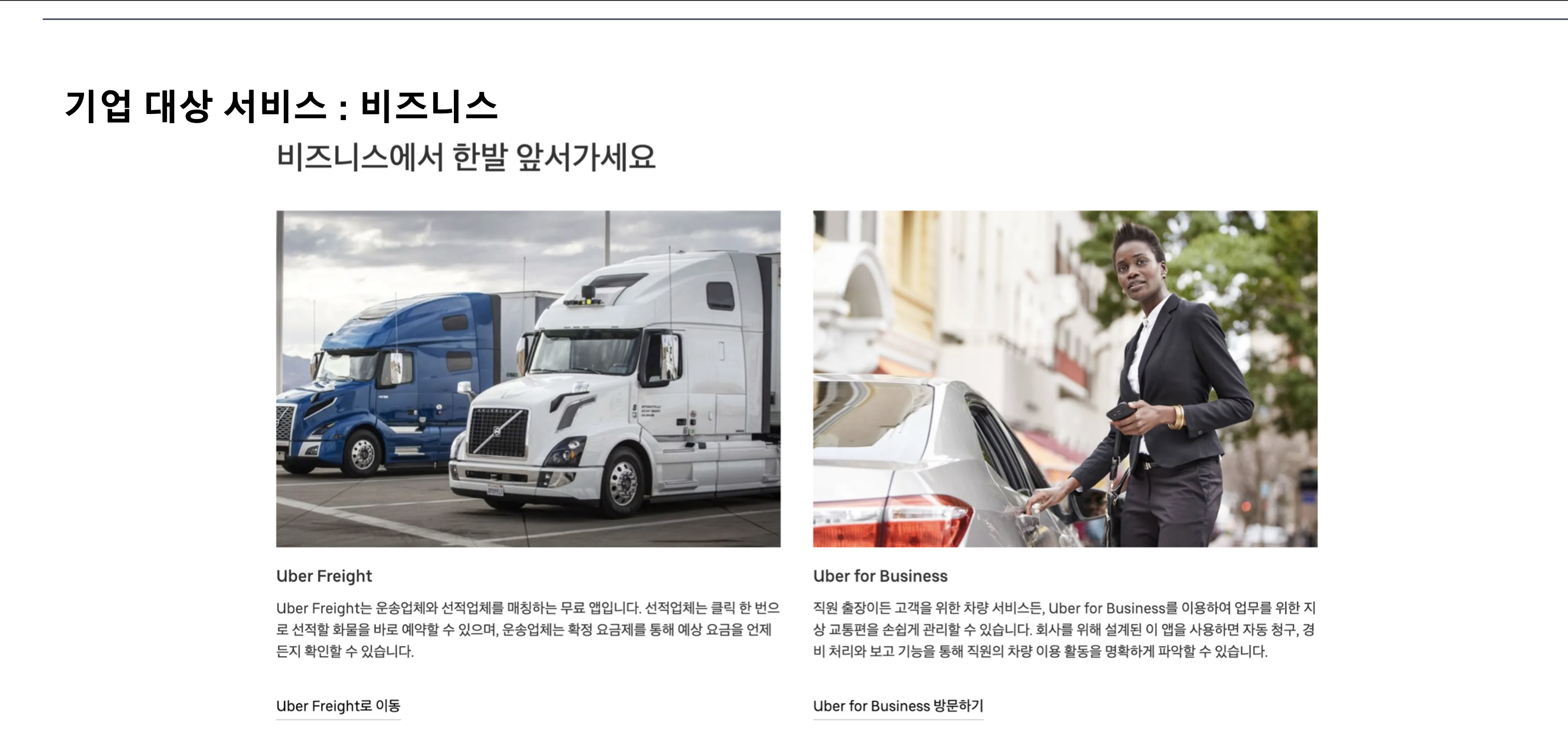 - Uber : 차량 서비스, Uber Eats, 수익 올리기, 도시 발전 촉진, 비즈니스