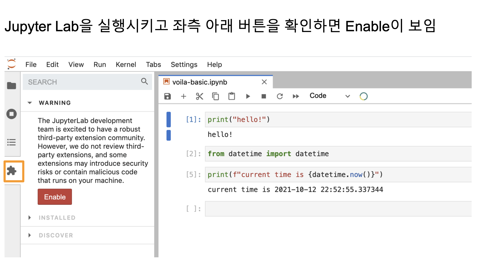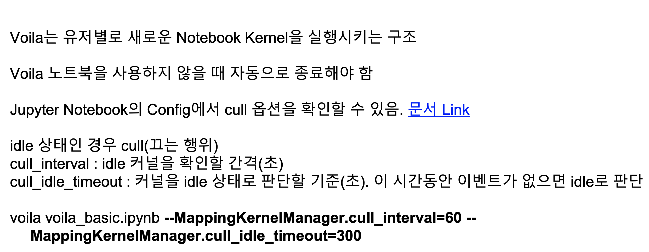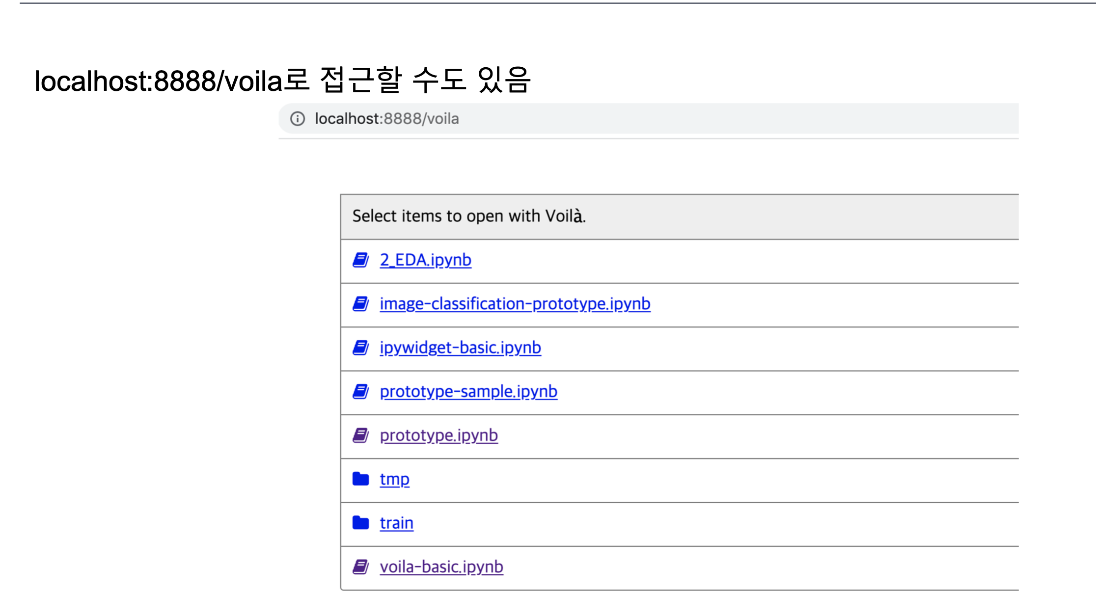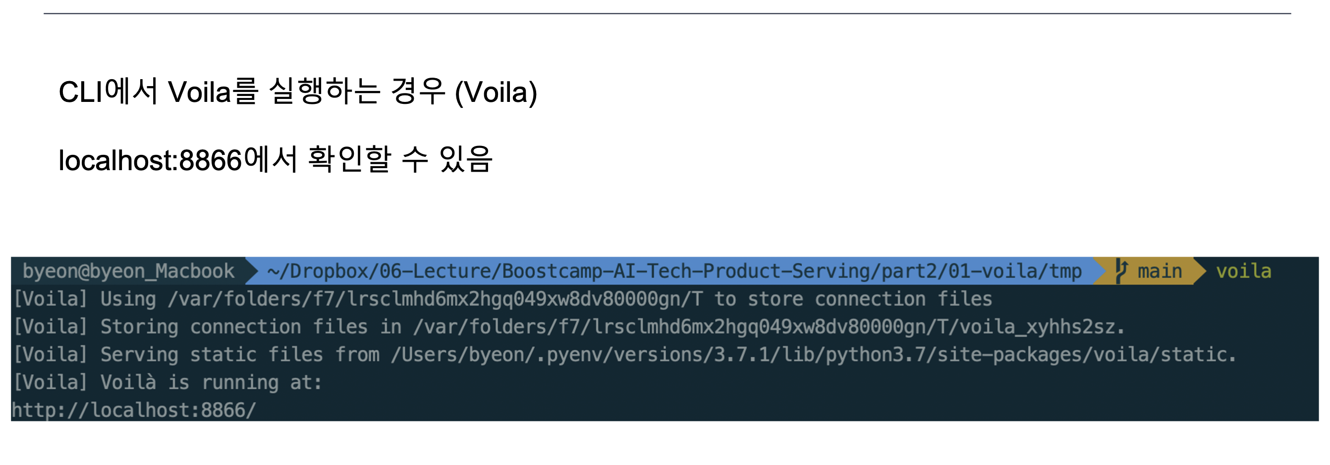 - Notebook에서 별도의 코드 추가 없이 실행할 수 있는 점이 Voila의 강점