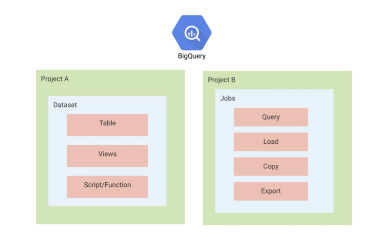 - GCP의 Project 내부에 BigQuery의 리소스가 존재