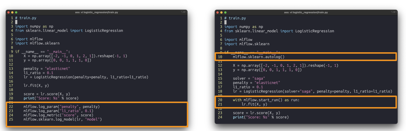 $ mlflow run logistic_regression_with_autolog --experiment-name my-first-experiment --no-conda