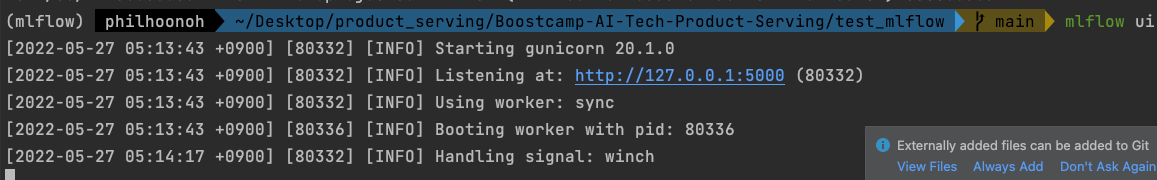 $ export MLFLOW_TRACKING_URI="http://127.0.0.1:5000"