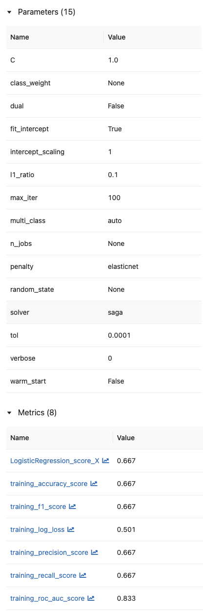 $ mlflow run logistic_regression --experiment-name my-first-experiment