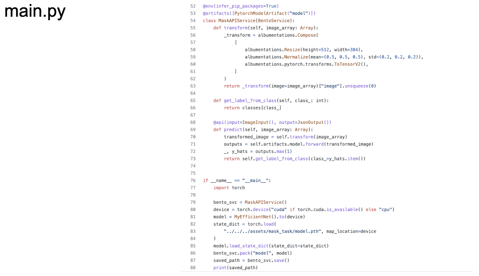 - https://github.com/zzsza/Boostcamp-AI-Tech-Product-Serving/tree/main/part4/01-bentoml/app