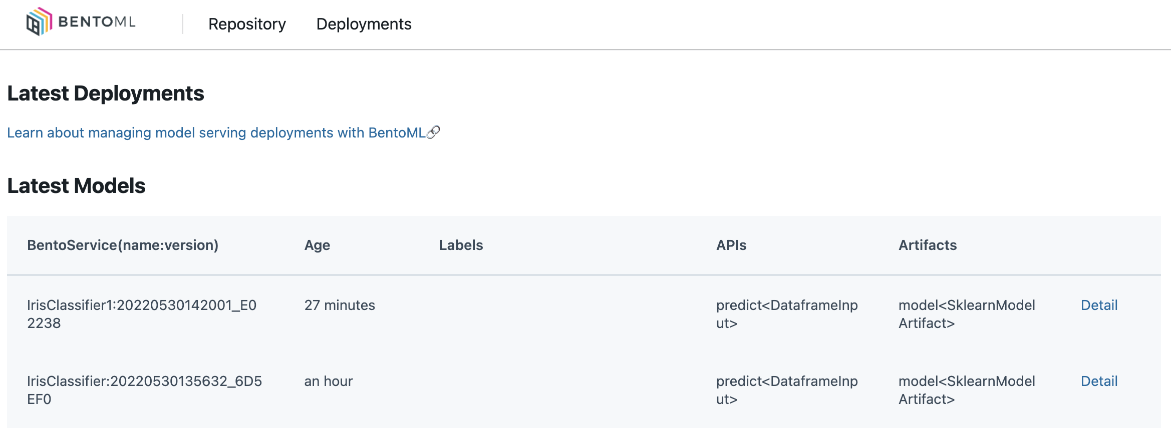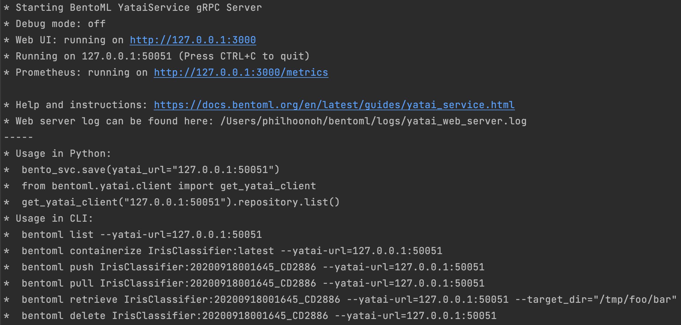 - 모델 저장소(Yatai) 웹 대시보드 제공