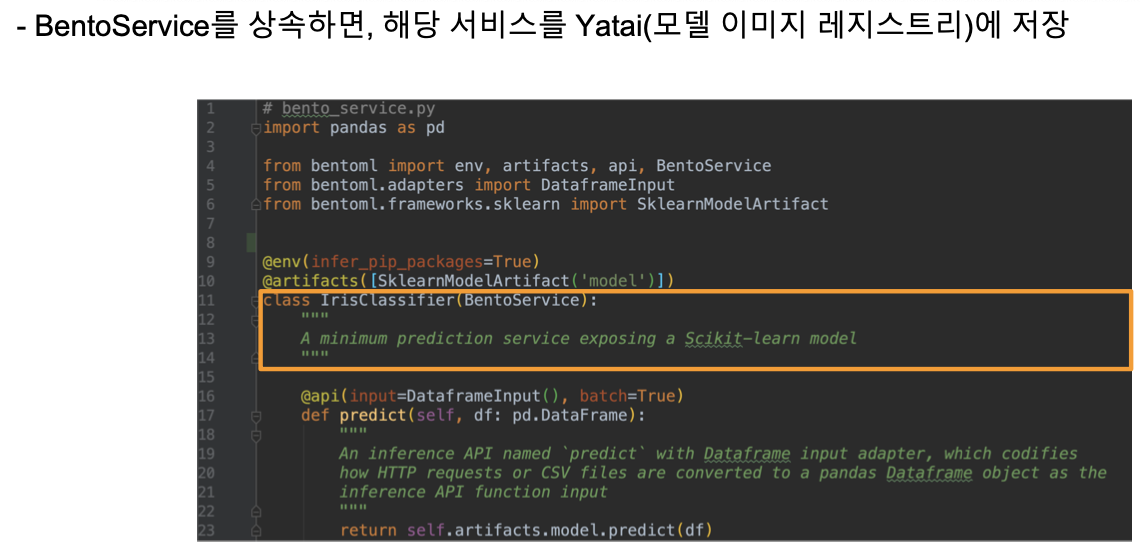 - bentoml.yml에 모델의 메타정보가 저장됨